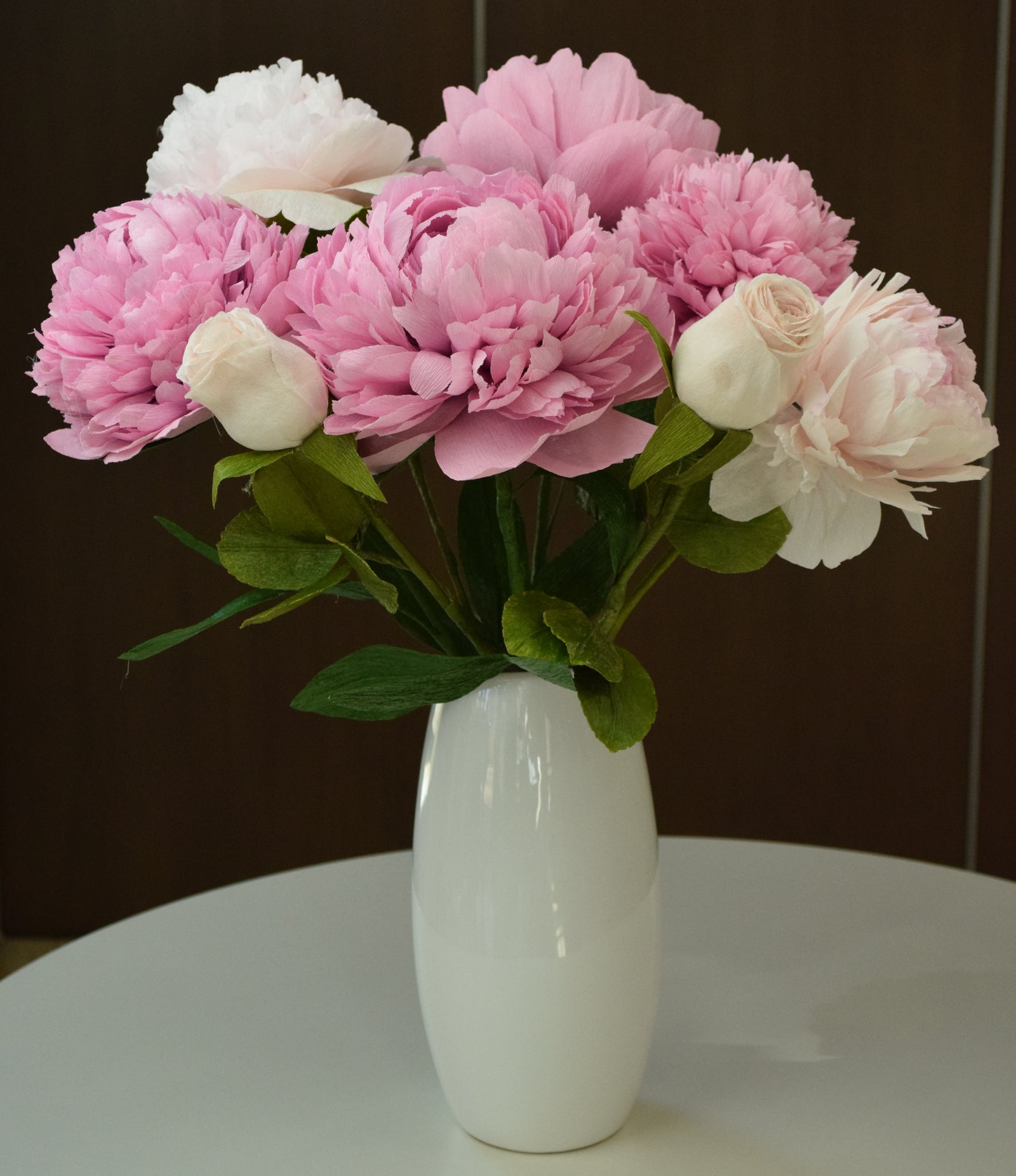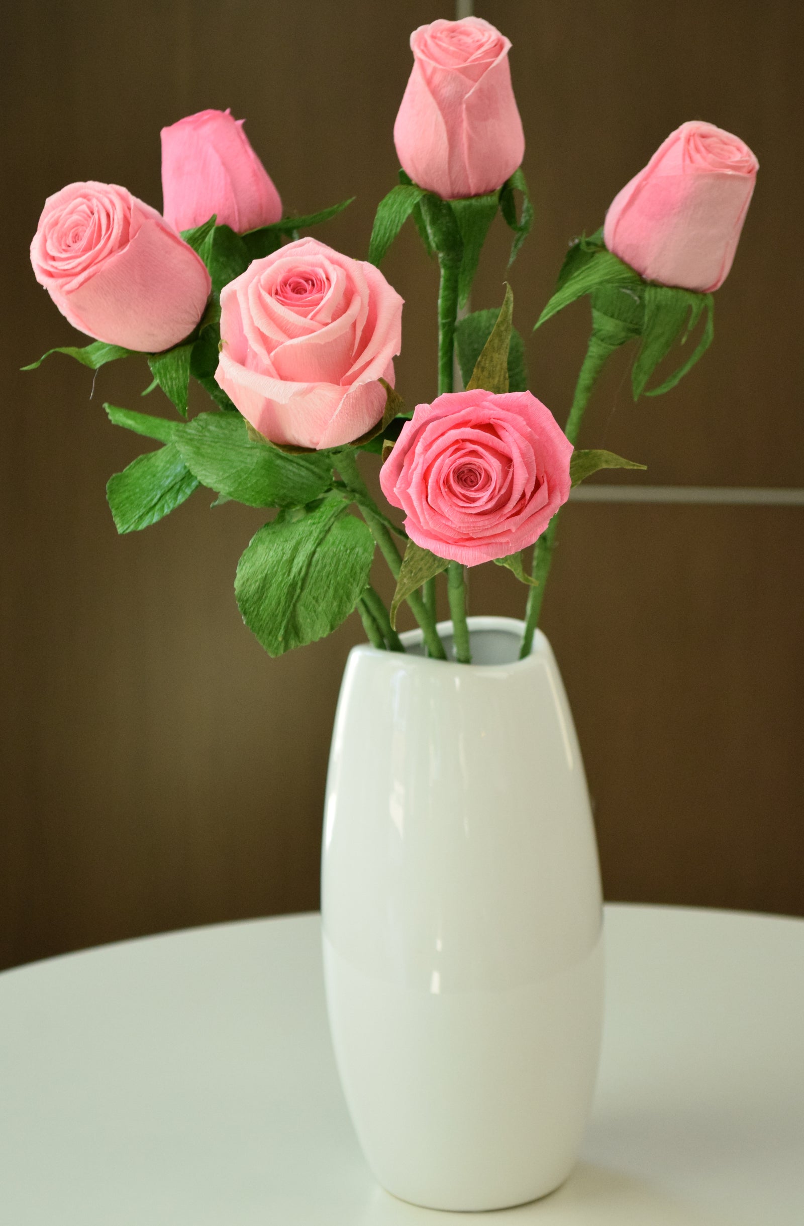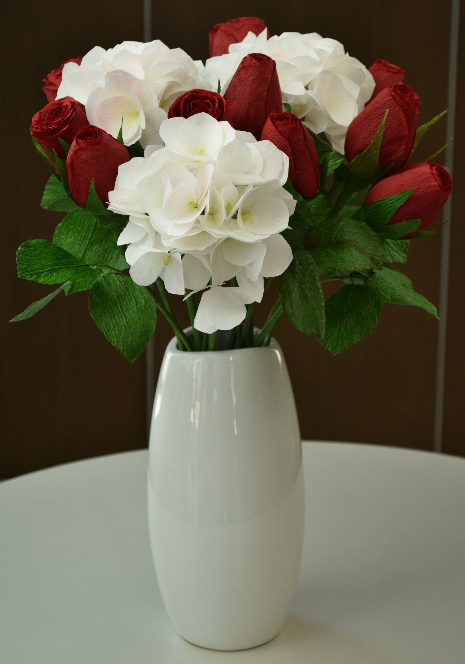 Dozen pink hybrid roses and 3 powder pink hydrangeas